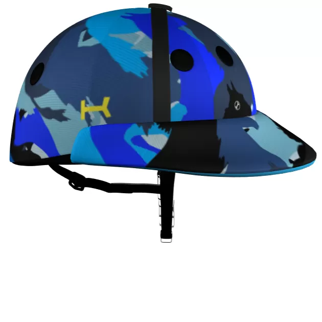 easy to identify from the other players, a polo helmet from