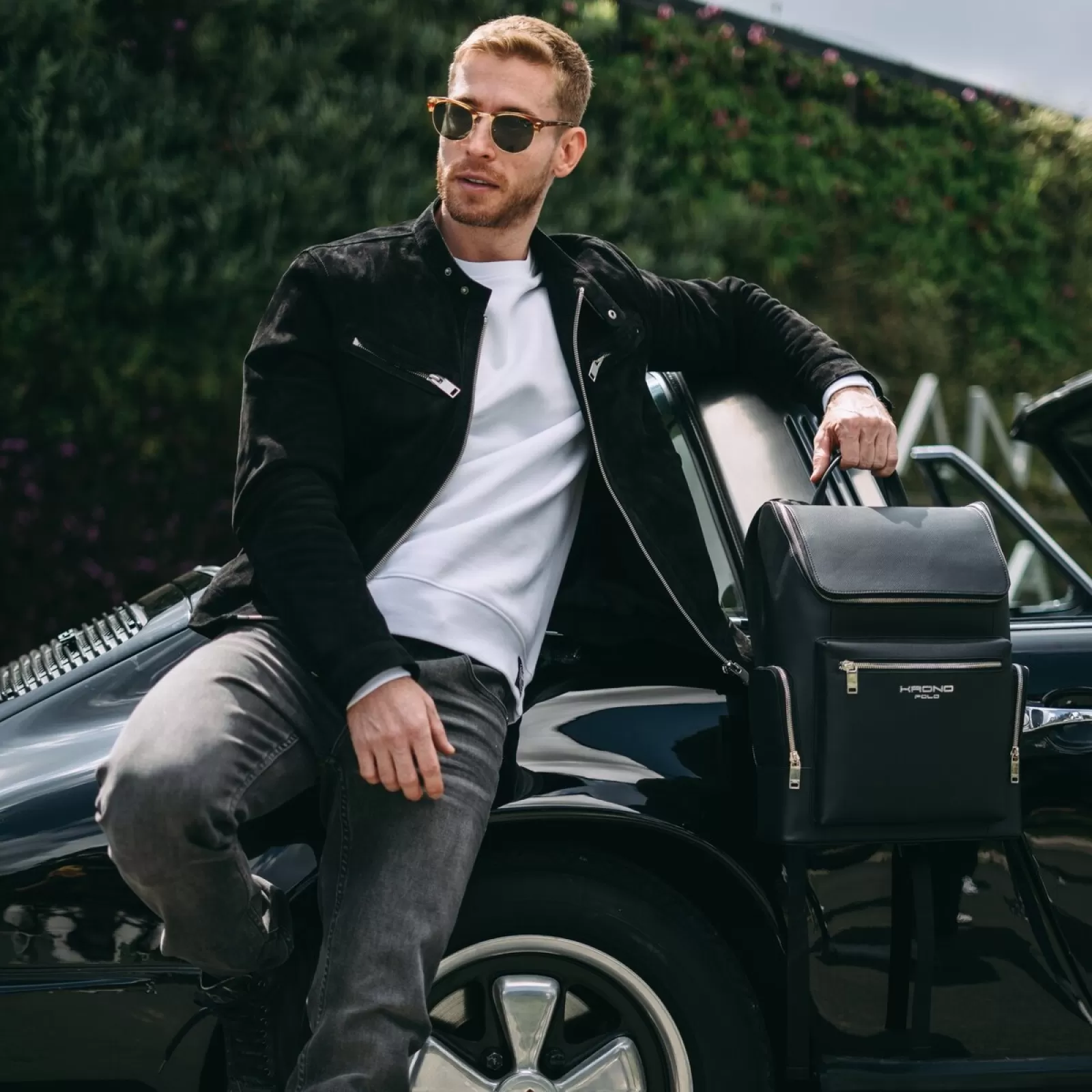 The A Sesta Backpack with palladium hardware. Designed with Krono Polo signature zips, internal compartments, and adjustable shoulder straps.