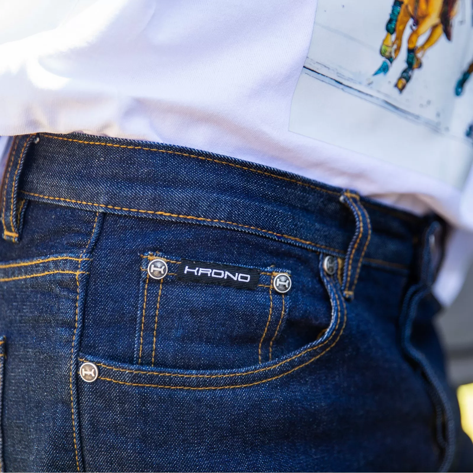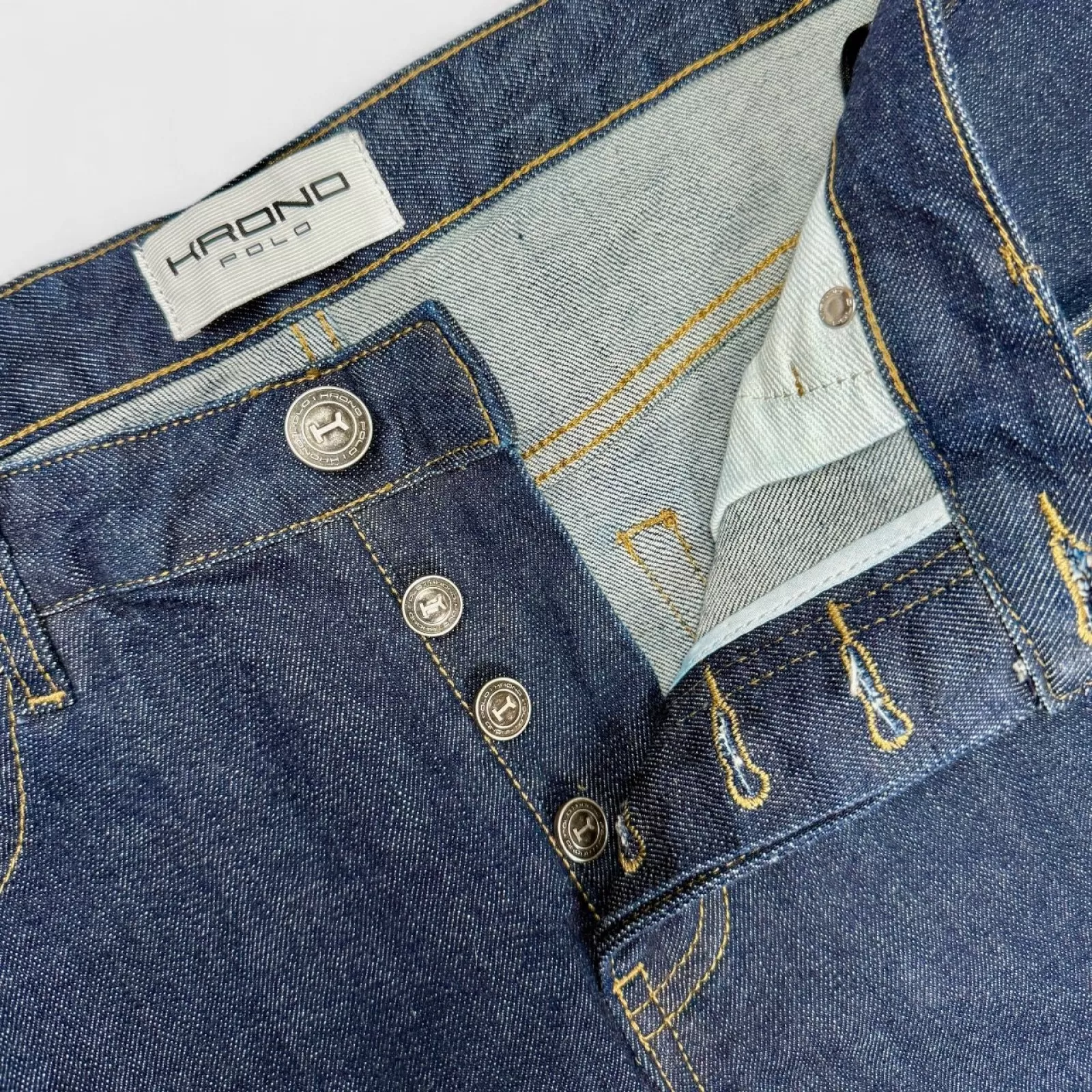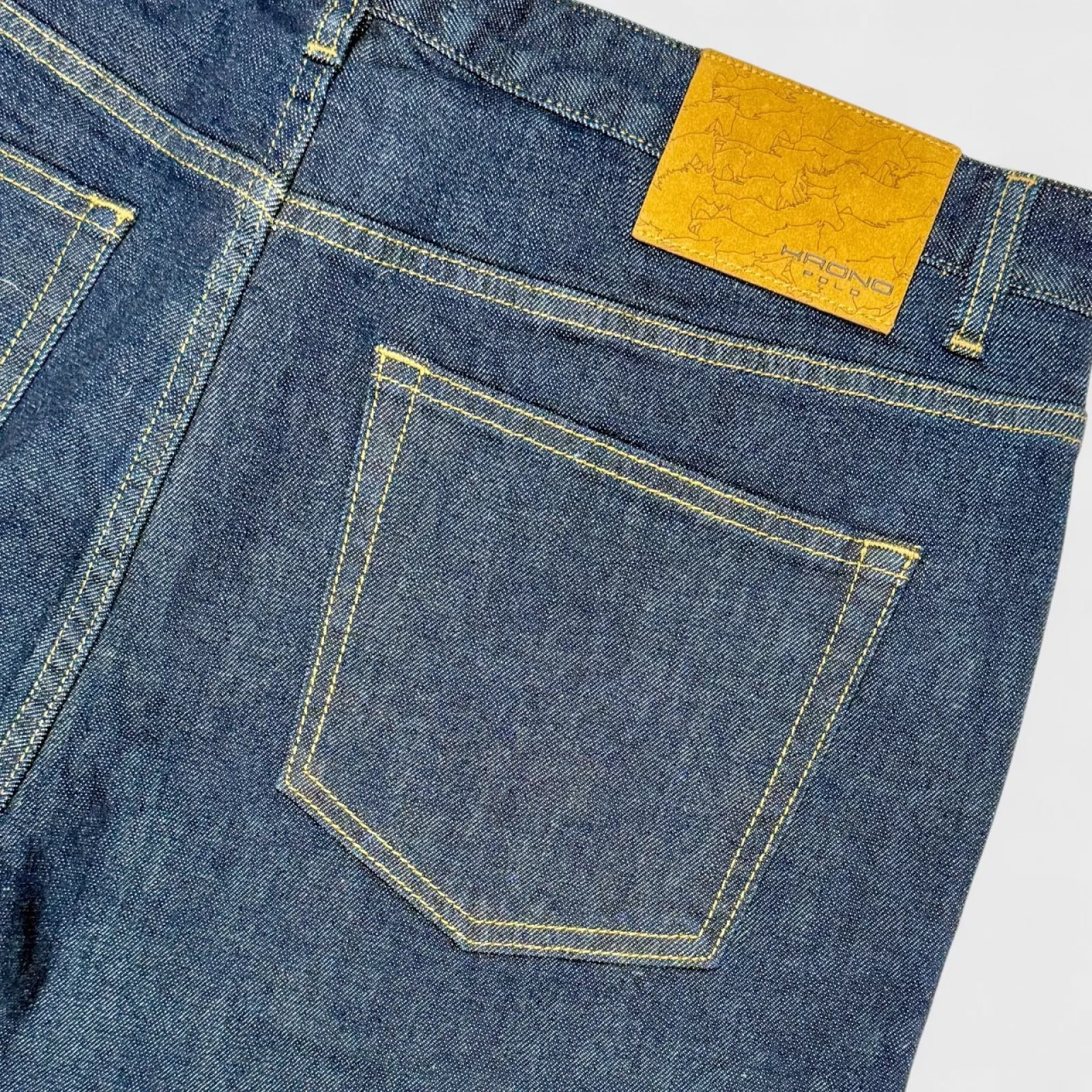 The premium Japanese selvedge ensures exceptional quality and authentic craftsmanship, while Italian-made buttons and exclusive accessories add a refined touch. At the back, our signature horses camouflage leather patch completes the design with a distinctive Krono Polo accent.