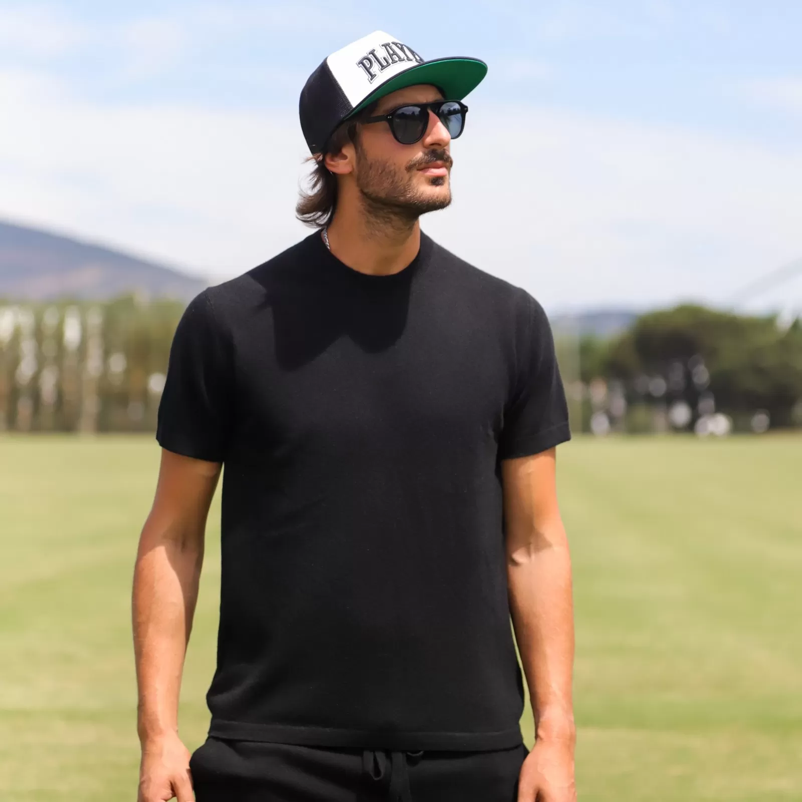 Timeless and versatile, the black cashmere T-shirt works effortlessly with jeans or trousers for a casual yet refined look, and pairs perfectly with our matching cashmere pieces for a clean, elevated silhouette after a day of polo.