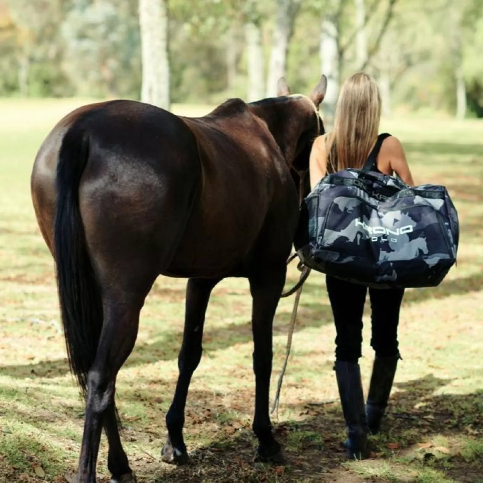 The Krono Polo Bag with our signature horse camouflage is the perfect bag for short adventures. Throw in your polo kit, polo boots, kneepads, polo helmet, elbow pads, gloves, sunglasses and other essentials so you can just grab it and go when it’s time to play chukkas. We even added a compartment especially designed to keep your polo helmet away from the dirty boots you might have after a game of polo.