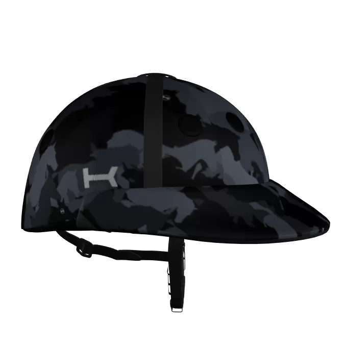 easy to identify from the other players, a polo helmet from