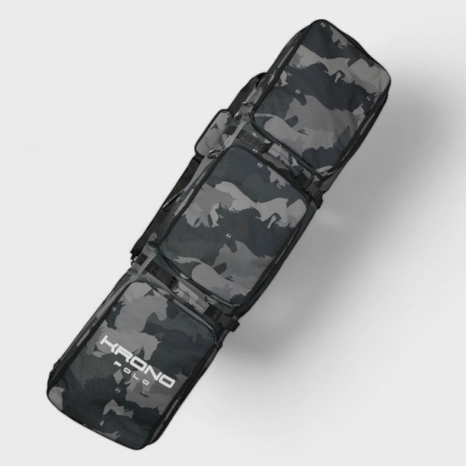 The Krono Mallet Bag with our signature horse camouflage allows you to travel with up to 20 sticks with extra compartments for your equipment.. Throw in your mallets, polo boots, kneepads, polo helmet, elbow pads, gloves, sunglasses and other essentials to travel to go your favorite holiday destination to play Polo. We even added three independent compartment to keep your clothes or boots away from everything else.