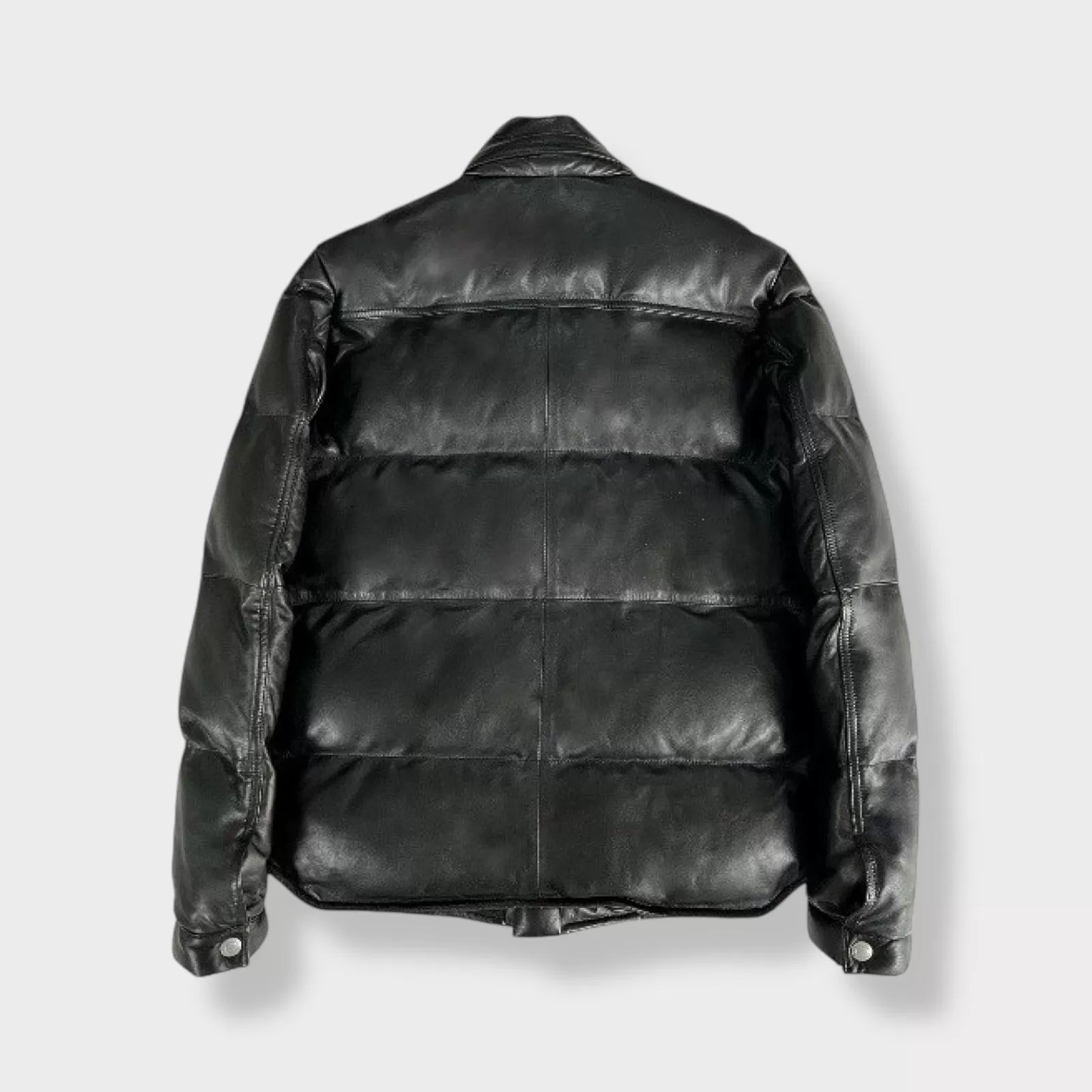 This KRONO POLO quilted leather jacket is padded with insulating down, and features a stand collar, buttoned cuffs, and snap button pockets with engraved with the brand’s logo. It is practical yet sleek and you are bound to wear it a lot in the colder days.