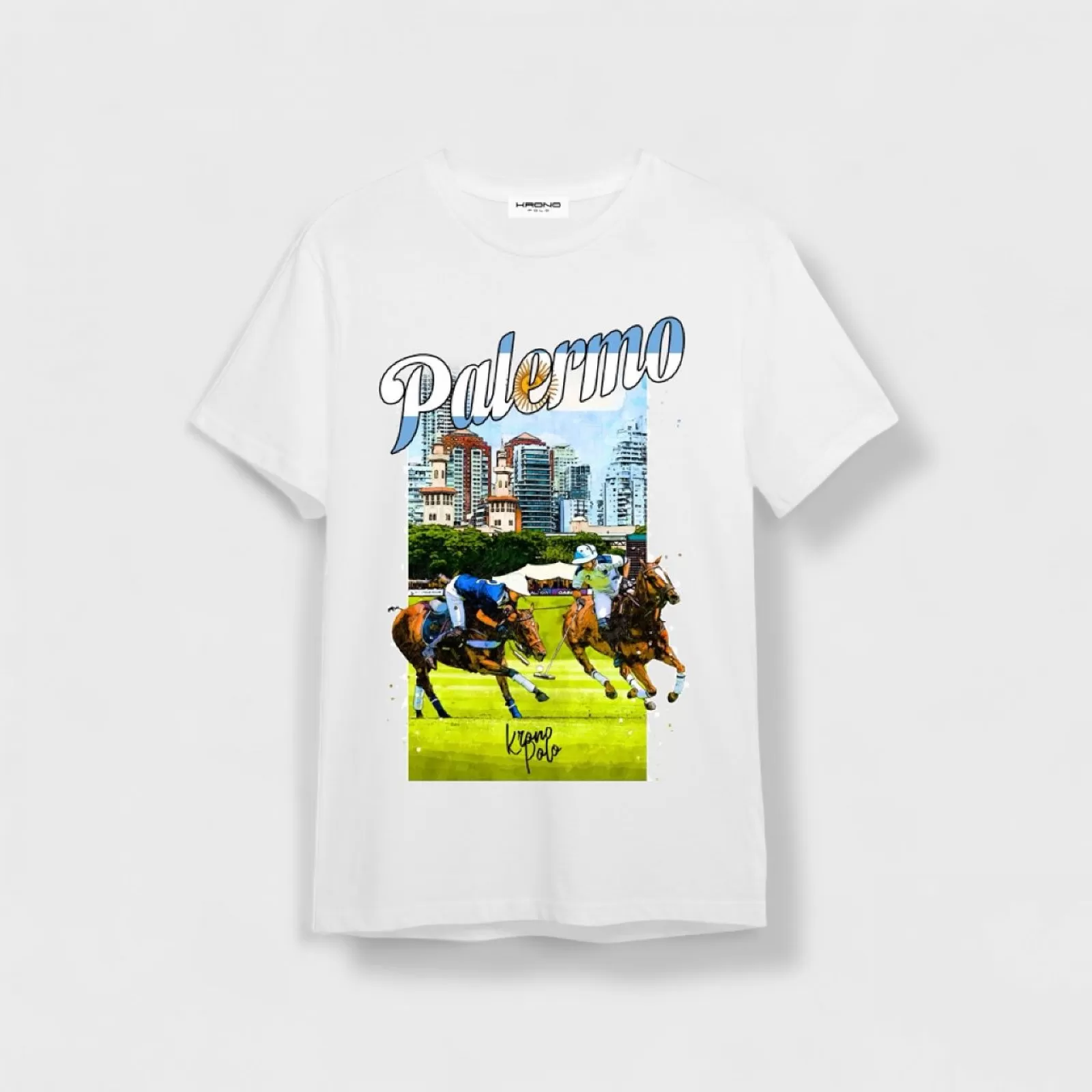 Our Polo Season's Palermo t-shirt in white/digital print. Constructed with 100% heavyweight cotton.