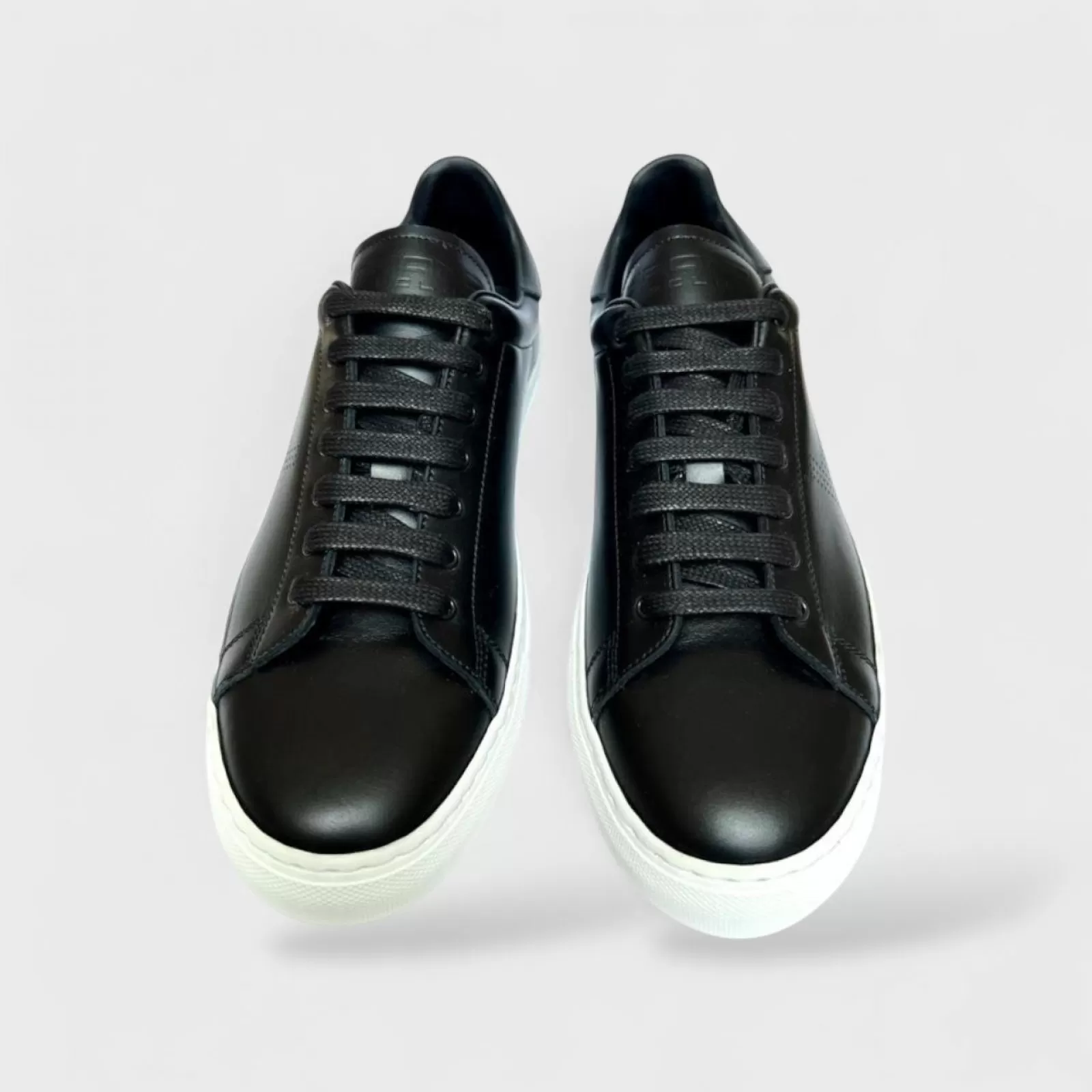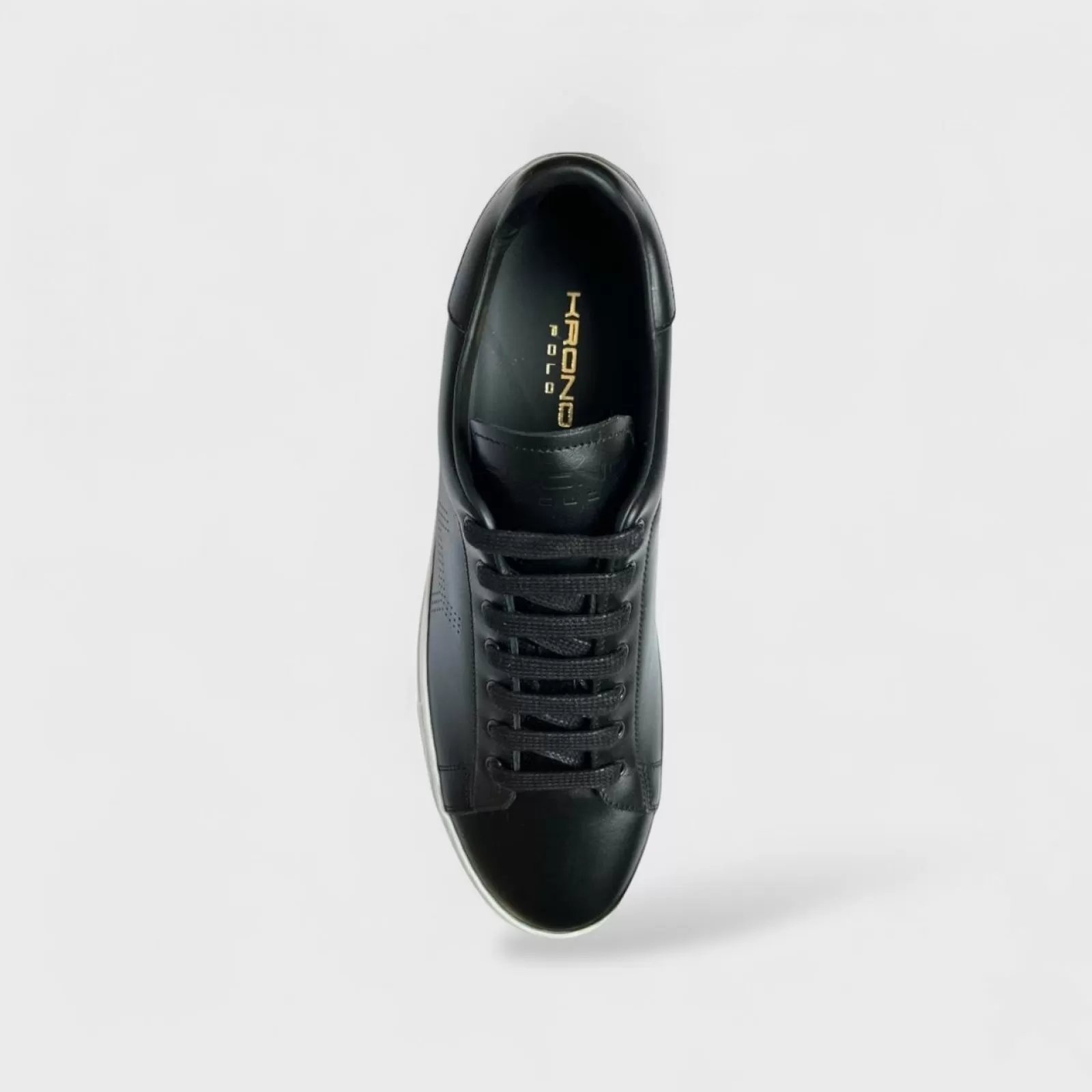 KRONO POLO's approach to sneaker design is to keep things classic, so they can easily be dressed up or down. This Black Leather 'Pilar K' pair is made from the finest Italian leather and discreetly branded with a perforated 'K' on each side. Style with denim or laid-back tailoring.