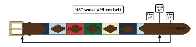 Alternatively, you can measure your current belt up to the hole you typically use and select the Krono Polo belt with the closest measurement in centimeters.