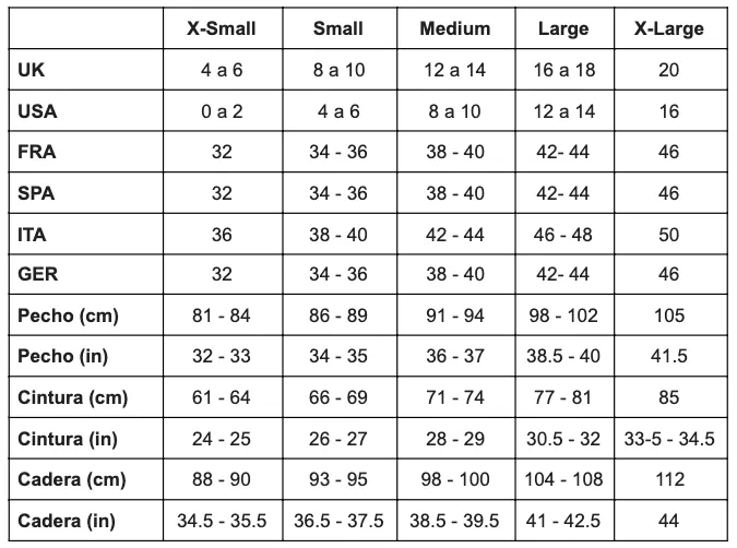 In this chart, you can see the measurement guide that Krono Polo uses as a reference according to the country. Confirm the size you wear in the country you normally buy your polo or regular trousers, as Krono Polo whites use standard measurements.