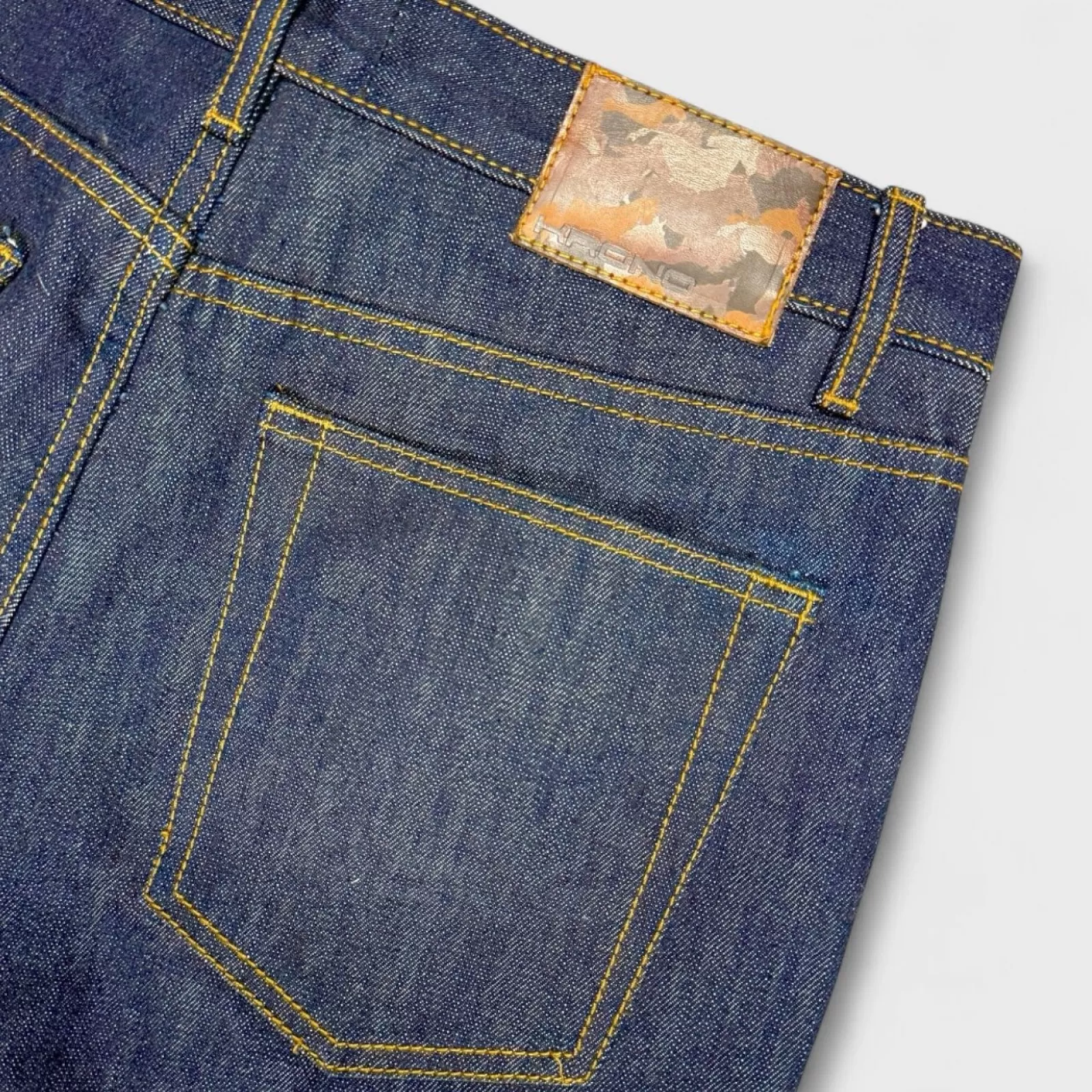 The selvedge used in creating these jeans is sourced from Japan, known for producing some of the highest quality denim in the world. The jeans are finished with Italian buttons and accessories exclusively made for Krono Polo, adding a touch of sophistication to the overall design. The distinctive signature horses camouflage leather patch at the back elevates the overall aesthetic of the jeans.