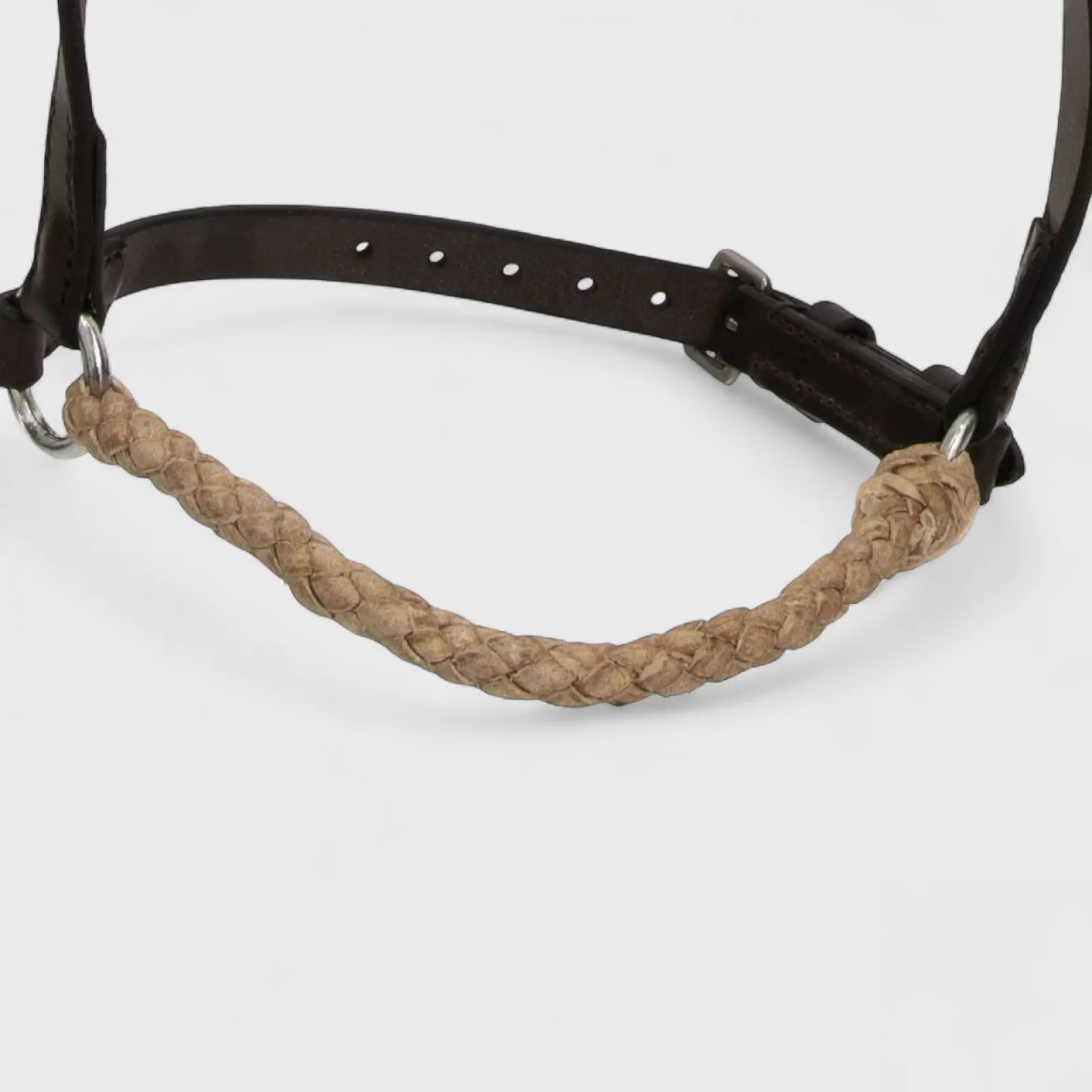 Exquisite leather dropped noseband featuring hand-braided rawhide details and stainless steel buckles.
