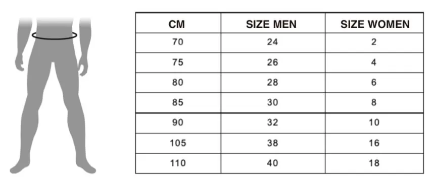 Measure your waist: Measure around your waist at the height where you normally wear your belt and adjust it slightly. In case you can't find the exact measurement shown in our reference chart, you should choose the one that is closest to it.