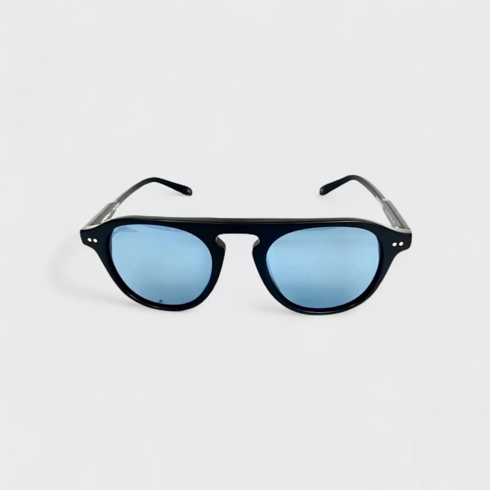 The Krono Polo sunglasses in polished black acetate with polarized blue lenses bring a sleek, modern edge to a timeless silhouette. Designed as a unisex style, they offer crisp vision and full UV protection, whether in the city, by the sea, or watching a chukka at Palermo, the Cathedral of Polo.