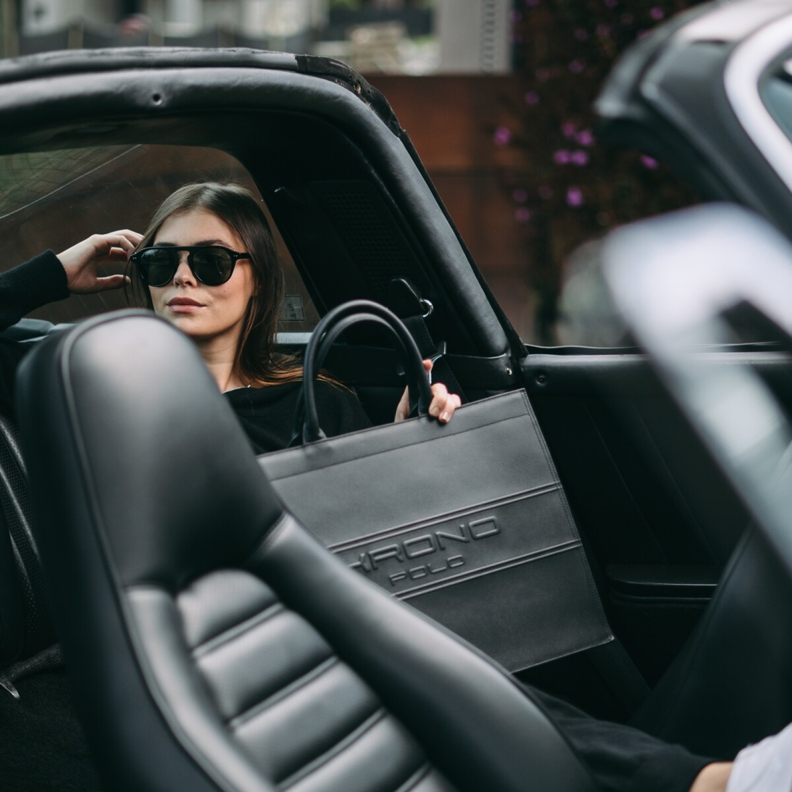 The KRONO POLO Tote bag is made from Saffiano leather and finished with the brand’s signature logo. This black Tote bag features a functional pocket inside.