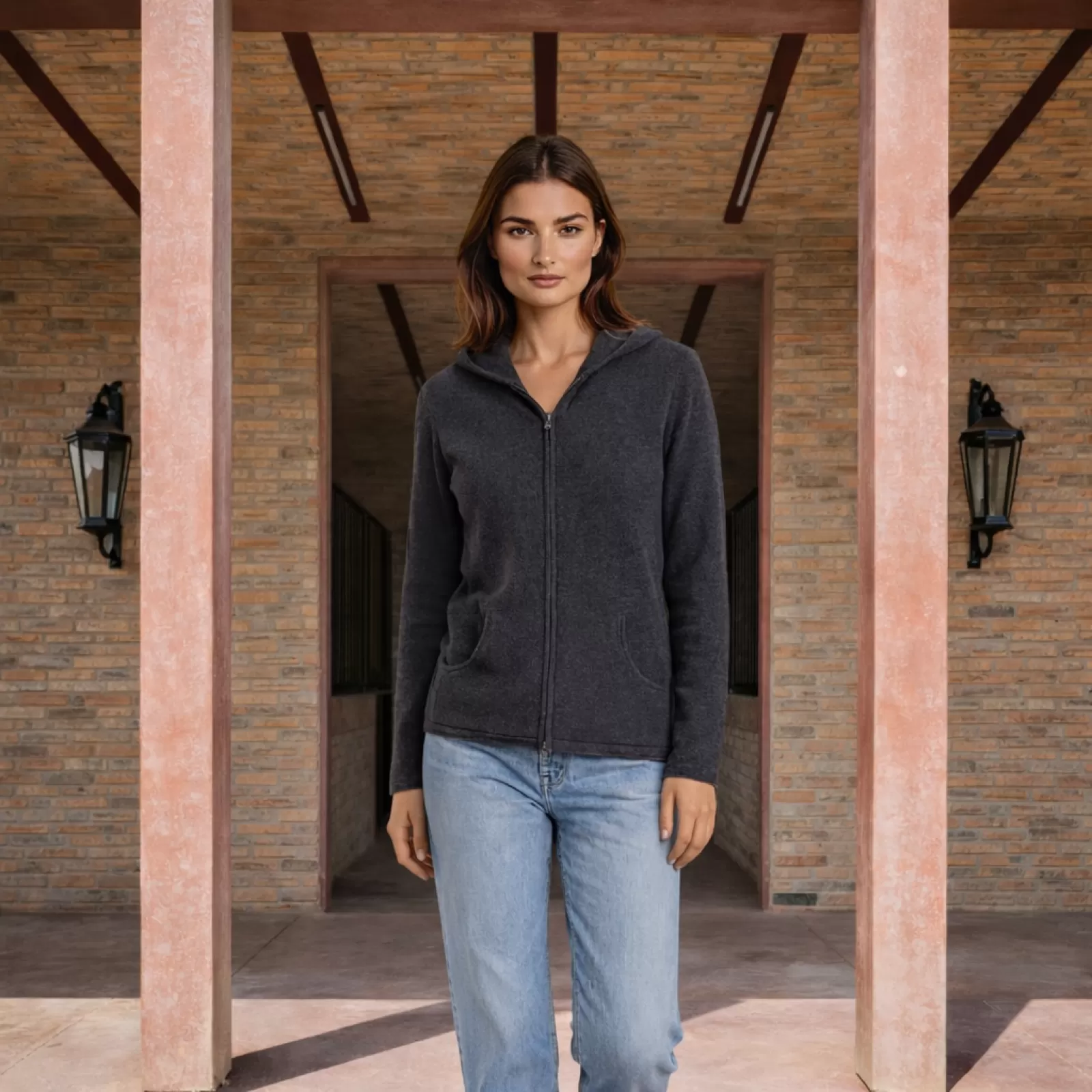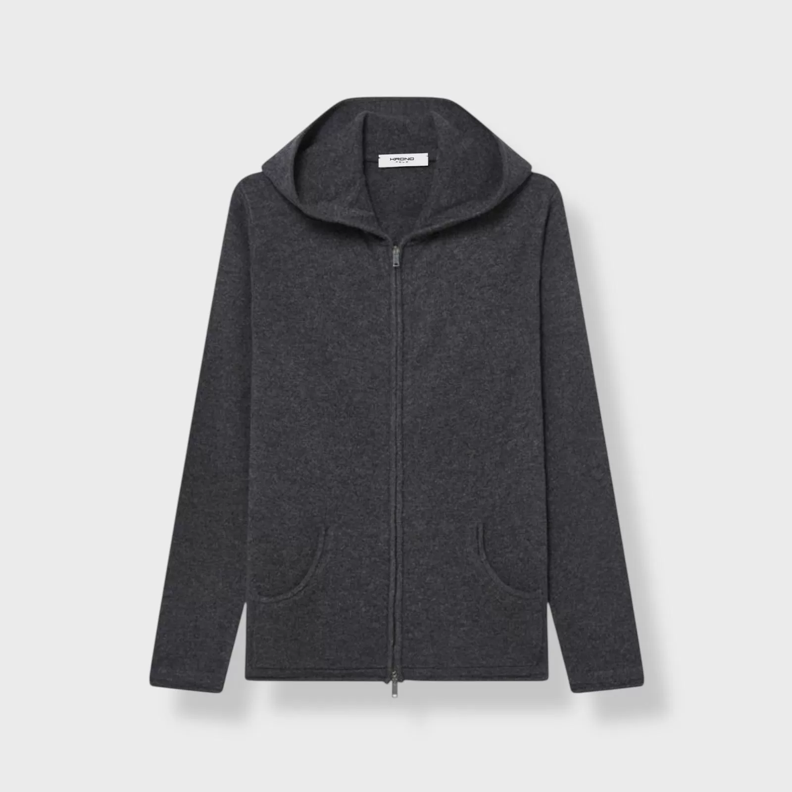 The Krono Cashmere Zip Hoodie for Women in Charcoal embodies modern elegance with a refined, understated edge. Crafted in Italy from 100% pure cashmere, it offers exceptional softness, natural warmth, and a fluid silhouette designed to feel effortless yet composed.